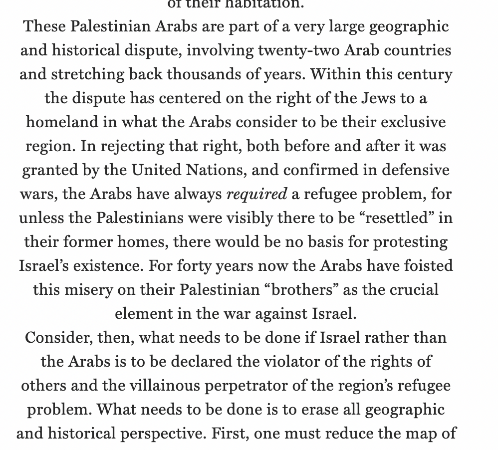 The Arabs have always required a refugee problem, for unless the Palestinians were visibly there to be “resettled” in their former homes, there would be no basis for protesting Israel’s existence