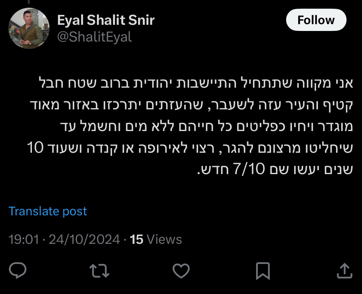 One of the options is to drop an atomic bomb on Gaza. I pray & hope for their [hostages] return, but there is also a price in war.