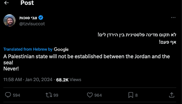 A Palestinian state will not be established between the Jordan river and the Mediterranean sea! Never!